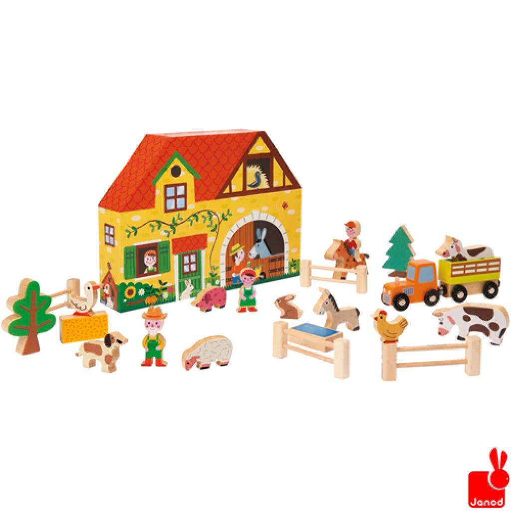 De boerderij speelset van Janod bevat alles wat je nodig hebt voor een boerderij. Speel met de verschillende boerderijdieren, de tractor, de stallen en breng wat leven in de boerderij.